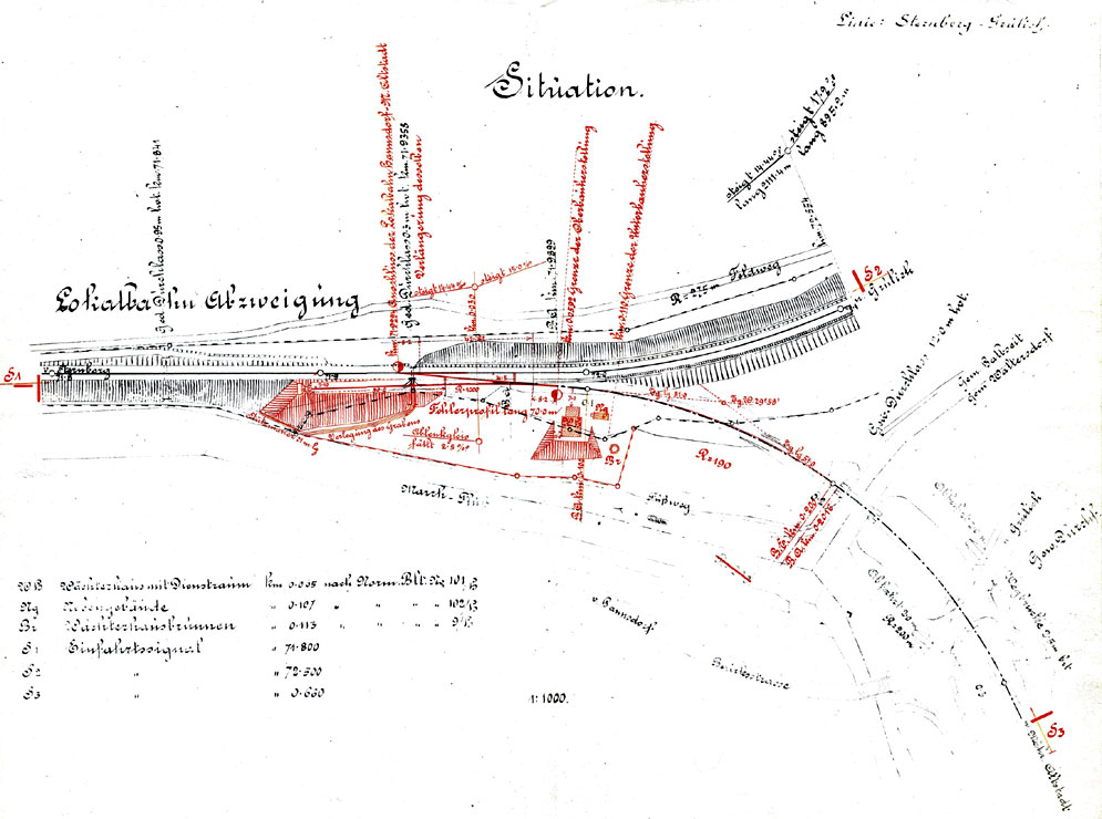 | Díky kamarádu Radkovi mám k dispozici dva plány odbočky - první je projekt výstavby strážního domku na odbočce, včetně doplňujících budov a studny a druhý je projekt výstavby zastávky Hanušovice, později Valteřice a dnes Žleb. A tak se můžete porovnat jak byl námět odbočky Morava zpracován na modulech. |