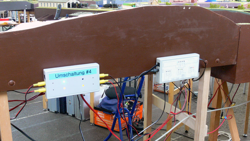 | Zatrolejované rozbočení tratí u stanice Bad Ferum, zajímavé využití hliněných ploch, které do období pozdního léta patří, flokování bylo hodně jednolité |