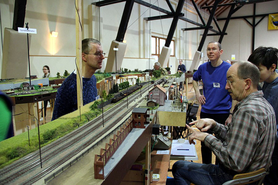 Na konci listopadu uspořádali kolegové z lipského Frema již tradiční setkání II.Epochy s námětem provozu na německých železnicích v období přechodu od zemských drah ke vzniku DR. Vzhledem k německé historii je toto období ohraničeno rokem 1928. Tradičním účastníkem tohoto setkání je kolega Petr Sammer s Hrabovou a také Marek Tvrdý se stanicí Loket. Letos jsme se připojili ještě se skrytou stanicí Mikulovice. Díky použití traťových modulů M.Kejhara a německých kolegů tak mohla vzniknout větev ČSD. Přechodovou stanicí do Německa byla stanice Bad Mengenbrunn, jejíž majitel, kolega Menge z Lipska je stavitelem většiny starých elektrických lokomotiv, které bez problémů jezdily mezi stanicemi Bad Mengebrunn a skrytou stanicí Görlitz Sbf. Elektrické lokomotivy mají sběrače zvednuté mírně pod trolej, které se nedotýkají. |