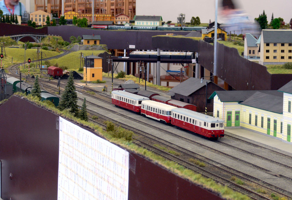 | Moduliště vyplnilo celý sál, dole grafikon obou tratí | |
