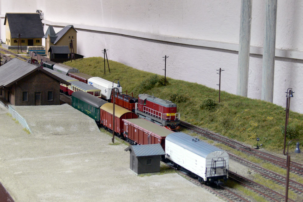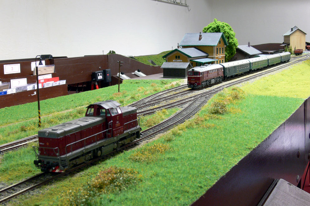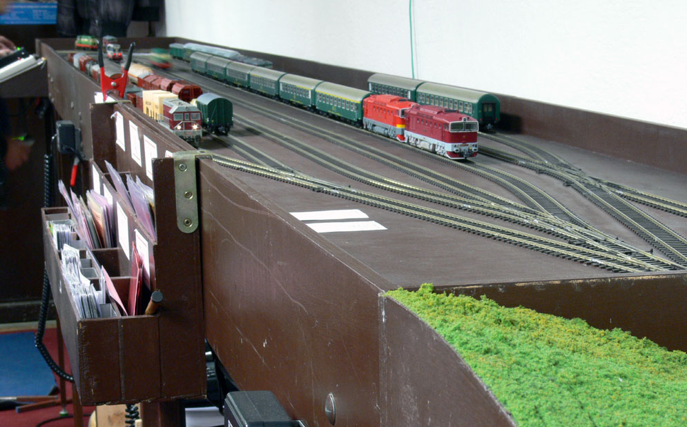 Koncem roku 2017, v lednu 2018 a pak v únoru jsme se setkali několikrát u sestaveného moduliště v klubovně zvané "Ubahn". Moduliště jsem postavili a otestovali před vánoci. Pro moduliště byl připraven grafikon pro pět strojvedoucích. Předpokládala se obsluha všech stanic, kde byly plánovány zálohy, které měli připravit zátěž pro Mn vlaky. Ne vždy se nám podařilo sejít v požadovaném počtu a tak se stalo, že některý grafikon byl odjet i s obsazenými stanicemi - Mikulovice skrytá a Jeseník. Stanice Kadaň a Javorník byly obsluhovány formou D3, což občas dělalo problémy při obsluze všech nakládacích míst Mn vlaků, kde nebylo počítáno s potřebnými časy pobytu ve stanicích. Ale i zpoždění jsou "kořením" železničního provozu. |