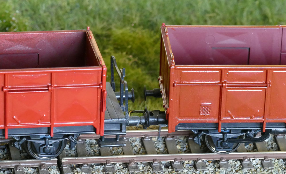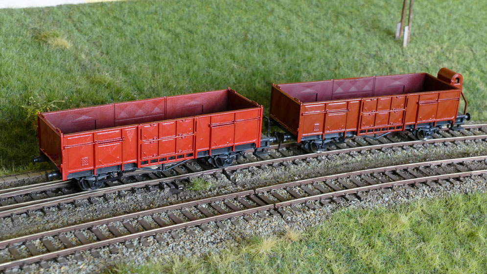 | A ještě detail RAL 3013 a ČSN 8440, vnitřky vozů barevně neupraveny. |
