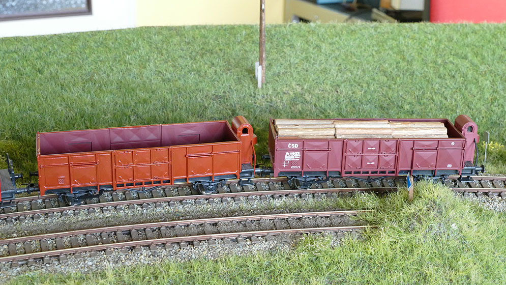 | Ale zpět k pravidlům - po celé období 1960 až 1990 platilo, že skříně vysokstěnných, krytých, nízkostěnných a výsypných vozů, mimo samovýsypné vozy jednoúčelové (vozy Wa, Wap) měly být natírány barvou s odstínem červenohnědá 8440 dle ČSN 67 3067. Střechy krytých vozů odstínem 1100 šeď střední, výjimku zde tvořily speciální vozy Zaz a Utz, které vyjížděly z výroby s hliníkovým nátěrem posuvných střech. Hliníkový nátěr dostávaly v období cca 1965 až 1975 i větrací klapky krytých vozů viz. fotografie vozu Zaz z veletrhu. Vnitřní nátěry - vozy otevřené z výroby nátěr stěn shodný s vnějším nátěrem, v dílnách již nebyl obnovován - tedy po dílnách či ŽOS barva rzi, výsypné neměly vnitřní nátěr bočních stěn a podlahy již z výroby. Vozy nízkostěnné měly nátěry bočních stěn - v dílnách nátěr obnovován. Vozy kryté byly vevnitř stříkány odstínem ČSN 1100 - šeď střední. Snad ještě poznámka - v 50. letech minulého století byly některé dodávky vozů výsypných natírány odstínem khaki místo červenohnědé - jednalo se o vozy Sa, Sav a St. Takže co s tím v modelu - zejména u vnějšího nátěru stěn. Můžeme použít barevný odstín od ČSN 8440, což je cca RAL 8004 měděná hnědá. Část vozů takto barevně po nátěru určitě vypadala. Pokud chceme mít vůz "červenější", což byl skoro častější případ než odstín dle ČSN 8440 máme k dispozici odstíny například RAL 3013 rajčatově červěná či 3014 korálově červená, které se blíží odstínům nalezeným na fotografiích či diapozitivech. Potvrzuje to rovněž "archeologický" výzkum na existujících vozech - tedy jak vypadá barevnost nátěru pod horními vrstvami barvy. A malá poznámka k nátěrům po roce 1990. Nejprve příchod cizích dodavatelů s odstínem RAL 8012, ve chvíli kdy nastal větší tlak na cenu nátěru, tak došlo k dodávkám opět od domácích dodavatelů a odstín nátěru se většinou spíše blíží ČSN 8440, no je to většinou něco mezi RAL 8012 a mezitím zaniklou ČSN 8440. |